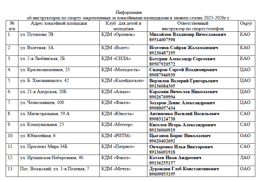 За период с 2018 по 2021 г.г. на территории пяти административных округов были открыты новые хоккейные площадки. Для дворовых хоккейных команд, приобретена хоккейная экипировка, закуплено оборудование для обслуживания хоккейных площадок.